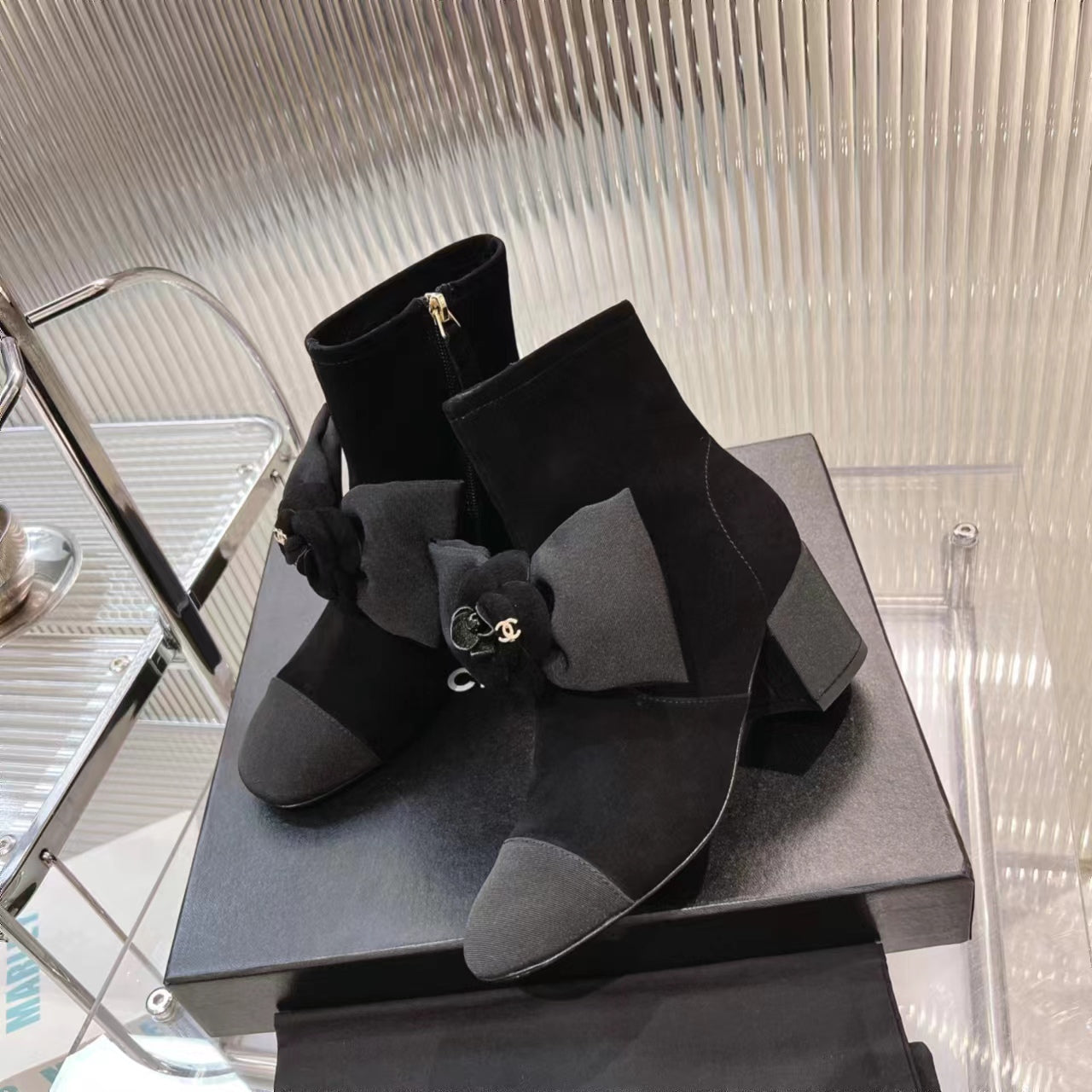 CC Short Boots 60mm Glossy Black Camellia Cowhide