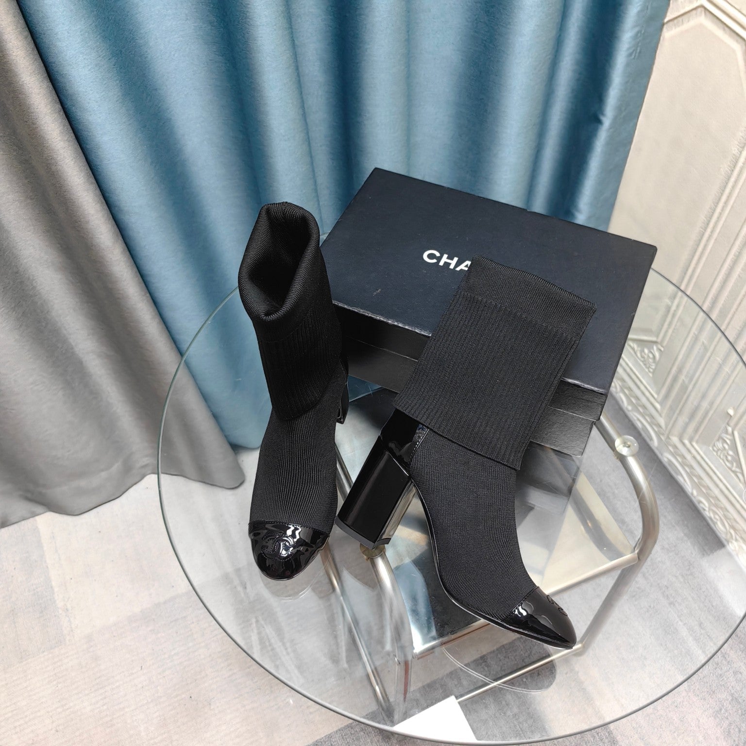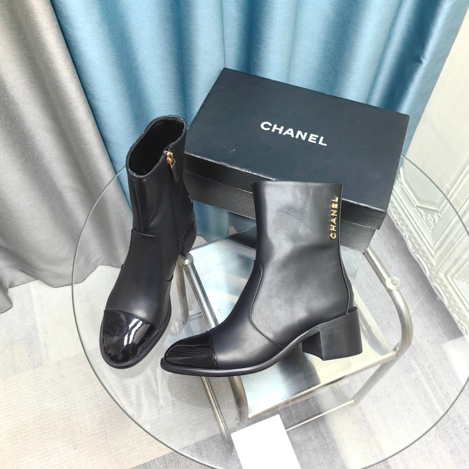 CC Short Boots 45mm Glossy Black Calfskin And Suede