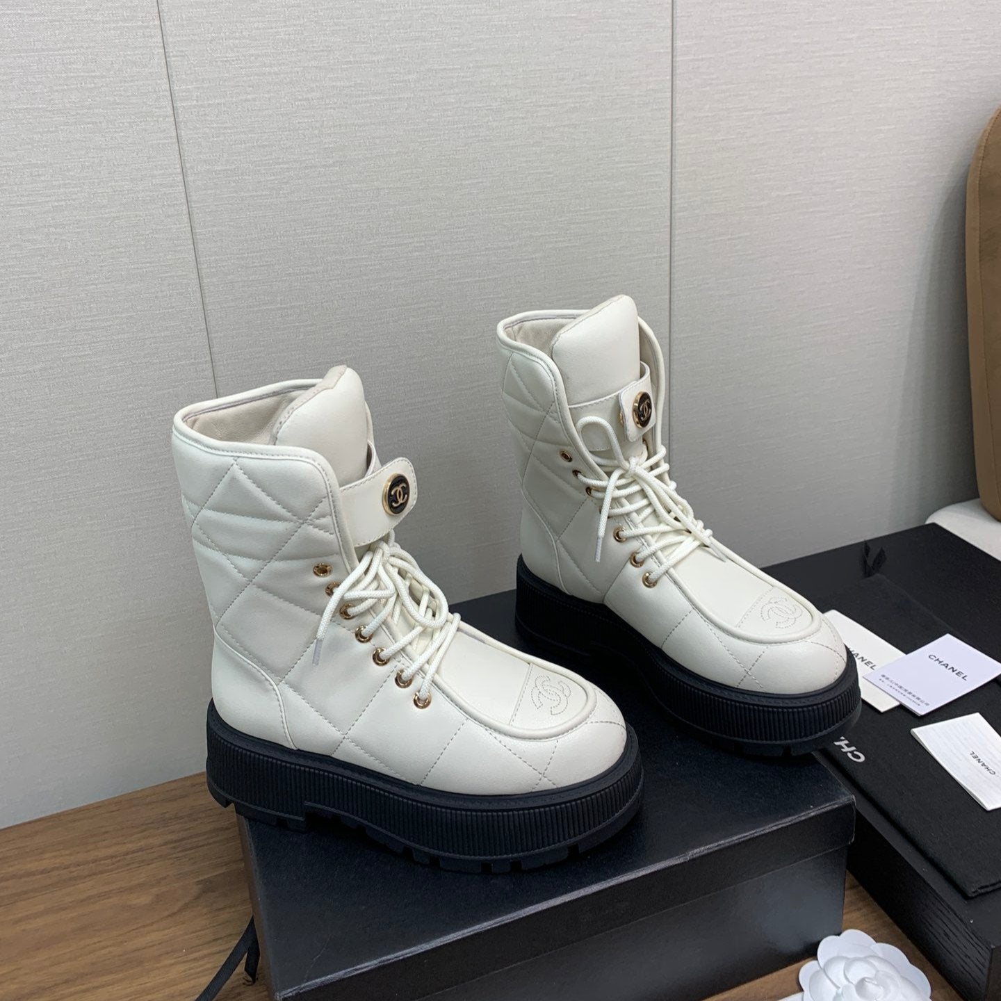 CC Short Boots 80mm White Wrinkled Quilted Calfskin