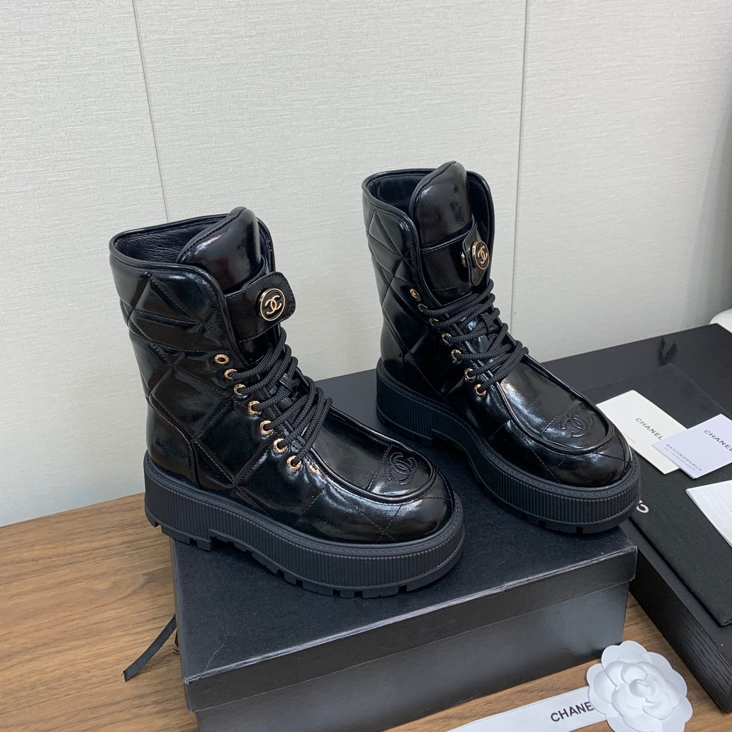 CC Short Boots 80mm Glossy Black Wrinkled Quilted Calfskin
