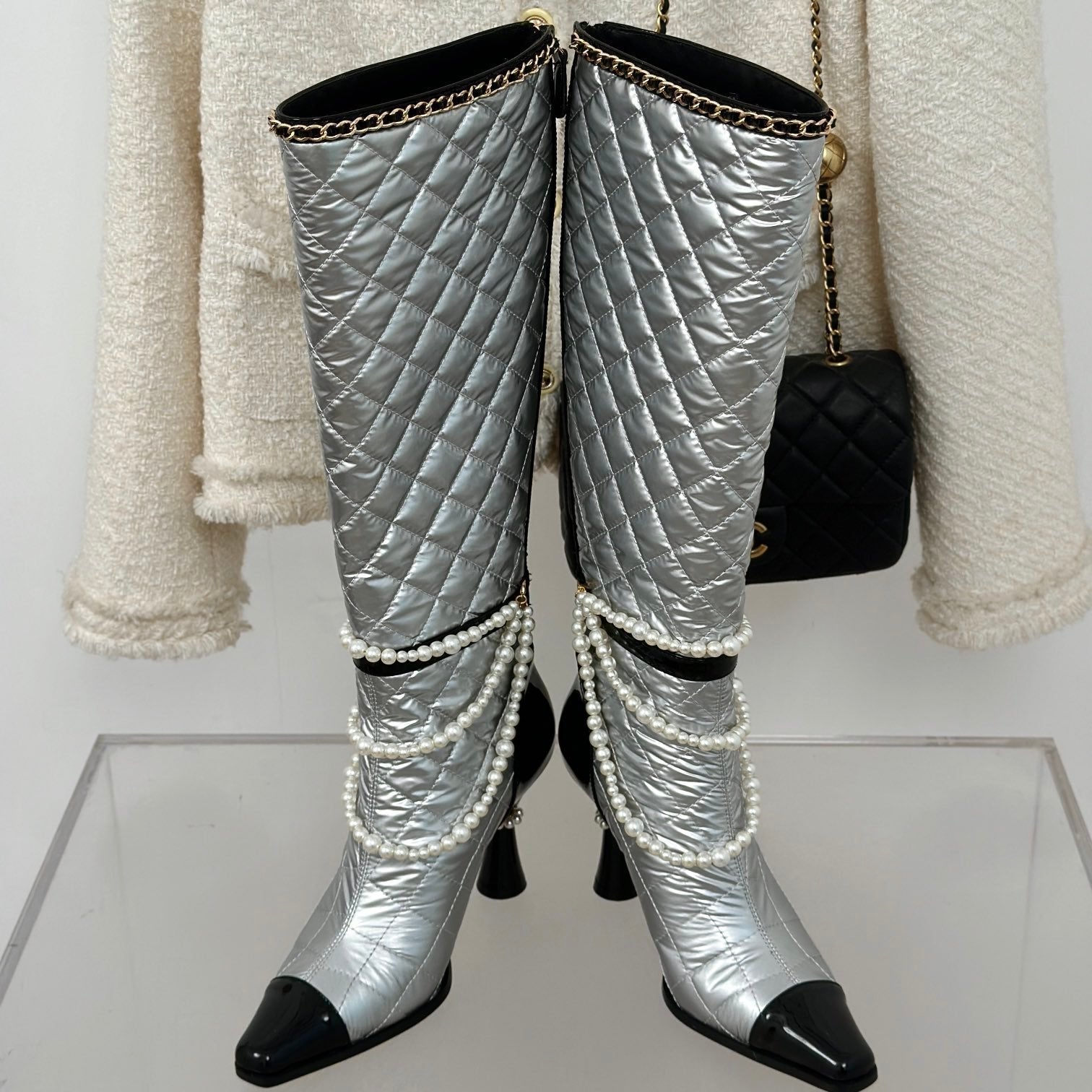CC High Boots 80mm Silver Wrinkled Quilted Calfskin