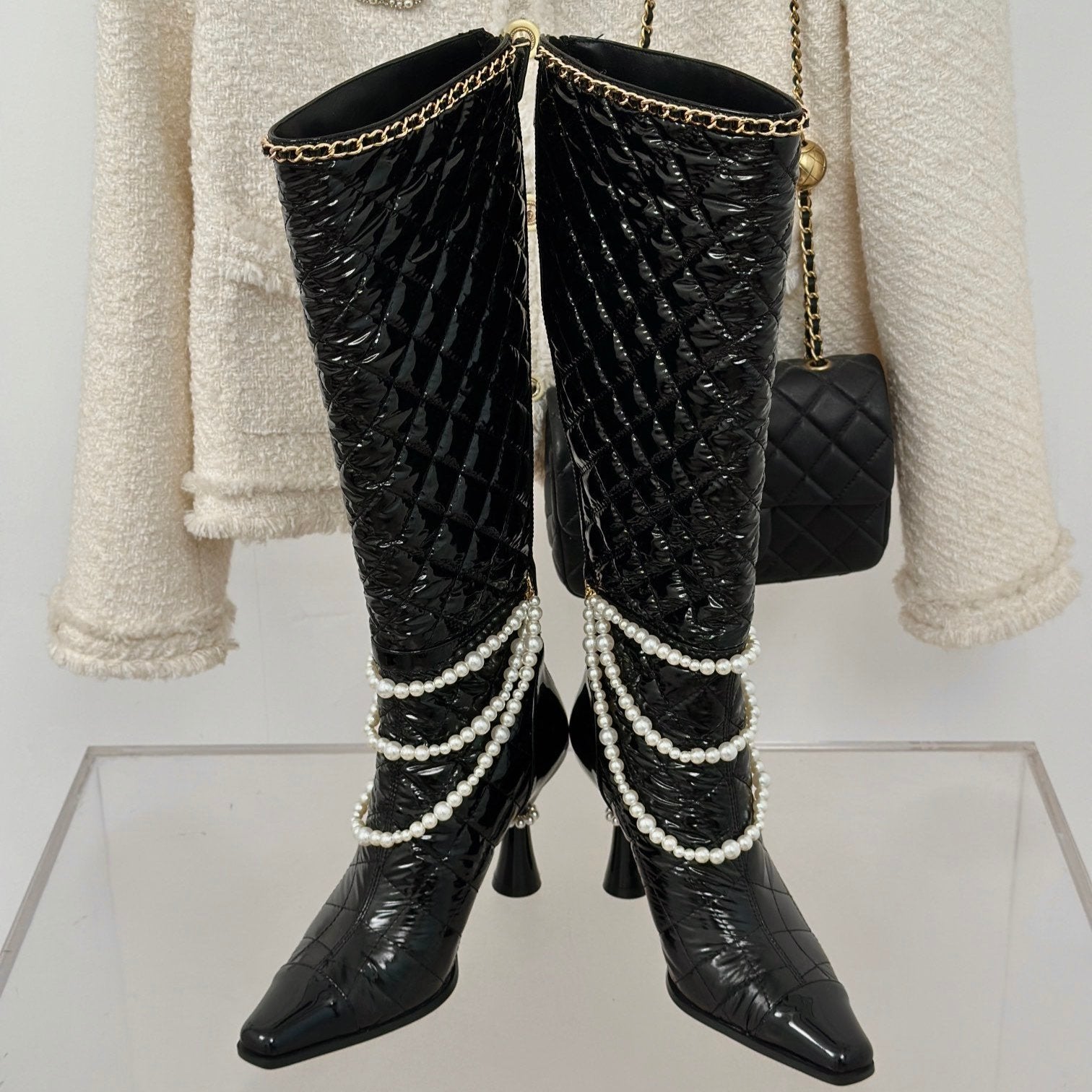 CC High Boots 50mm Black Quilted Calfskin