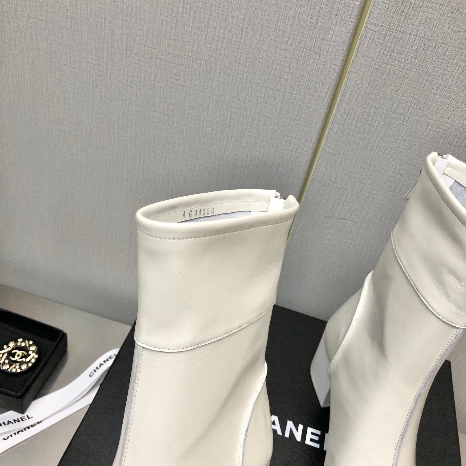 HIGH HEEL ANKLE BOOTS IN WHITE CALFSKIN