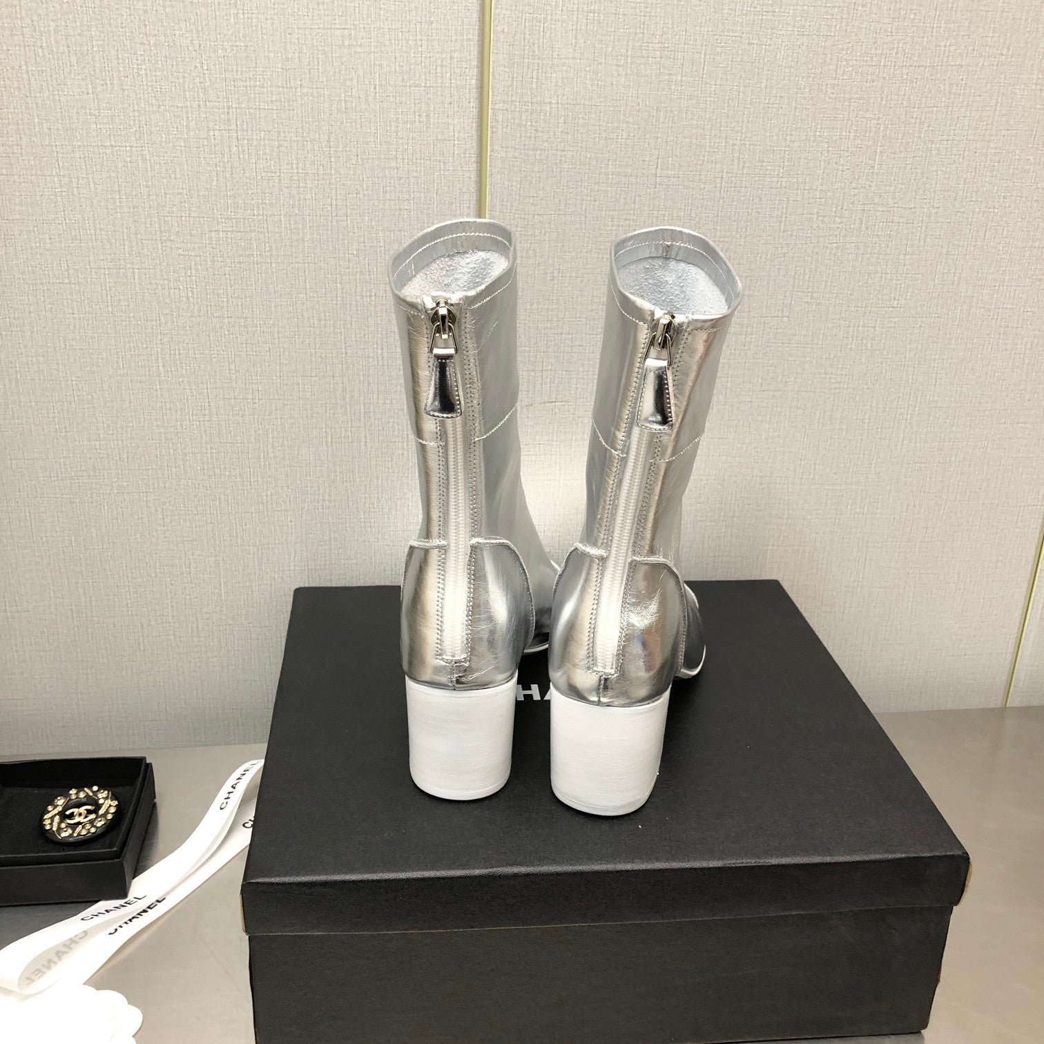 BLOCK HEEL ANKLE BOOTS IN SILVER CALFSKIN