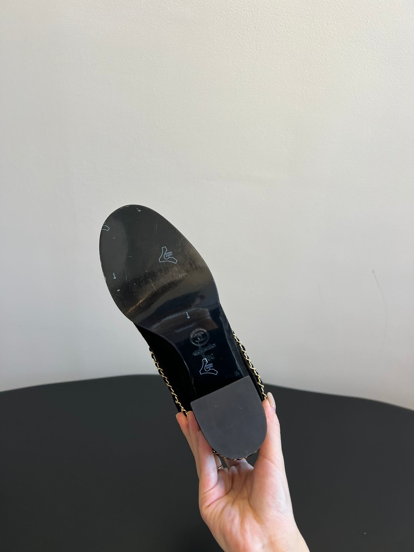 CC Short Boots Black With Chain Suede And Cowhide 944963