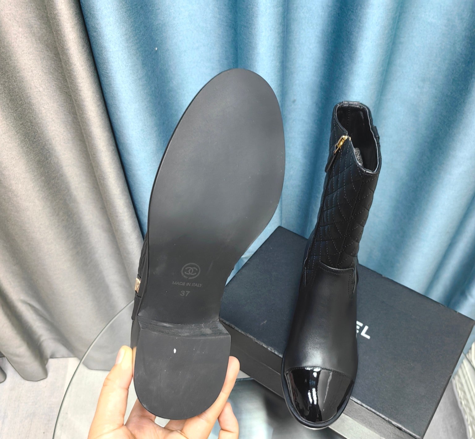 CC Short Boots Black Quilted Calfskin