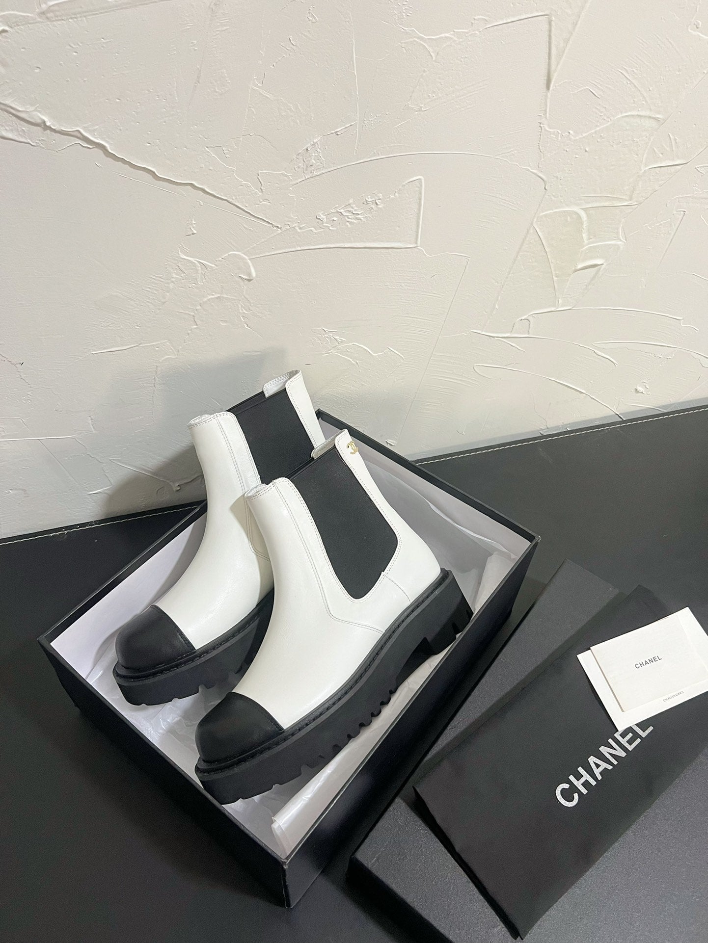 CC Ankle Boots White Mix Black Calfskin 937066