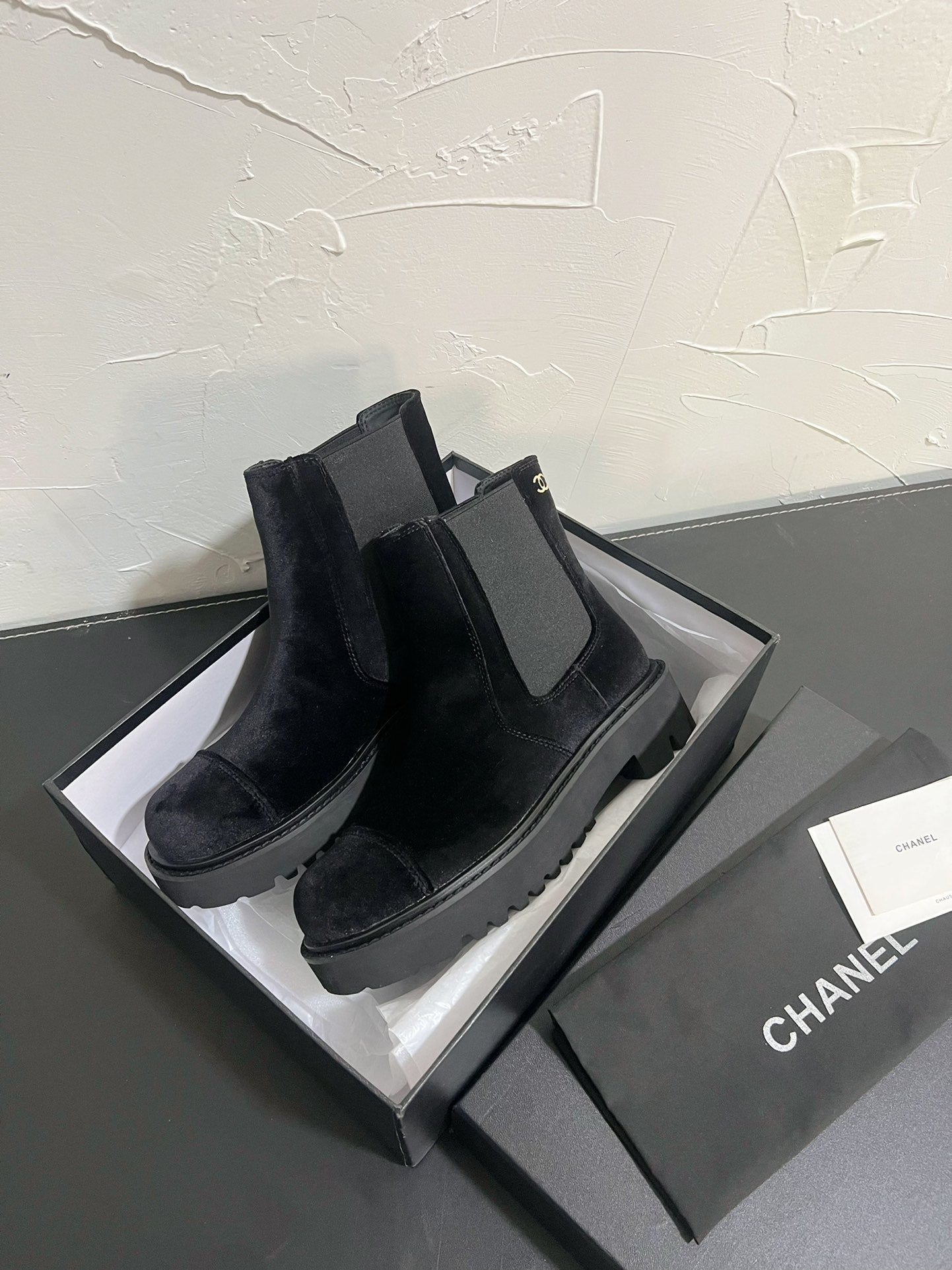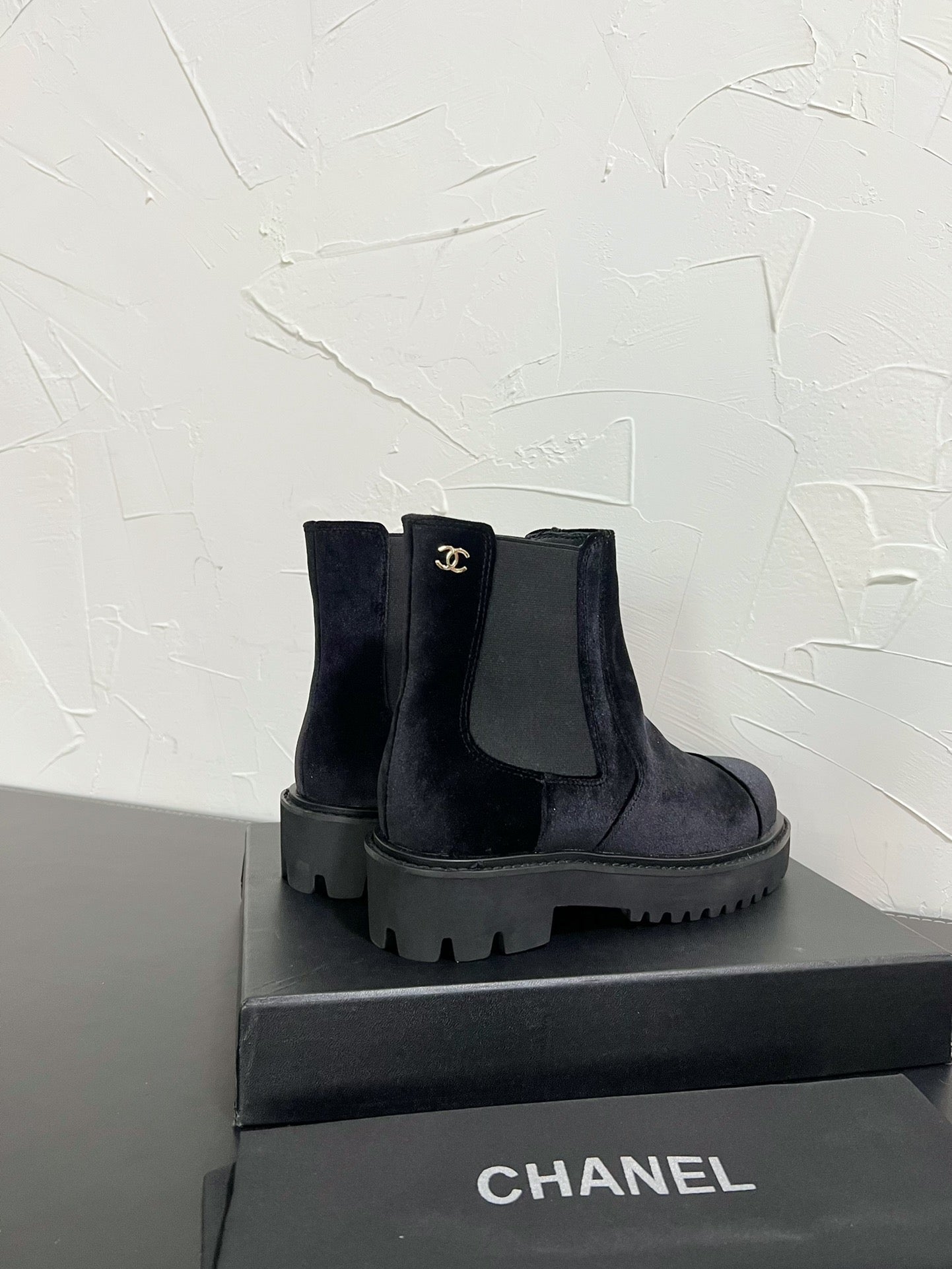CC Short Boots Black Suede Lining Wool And Lambskin