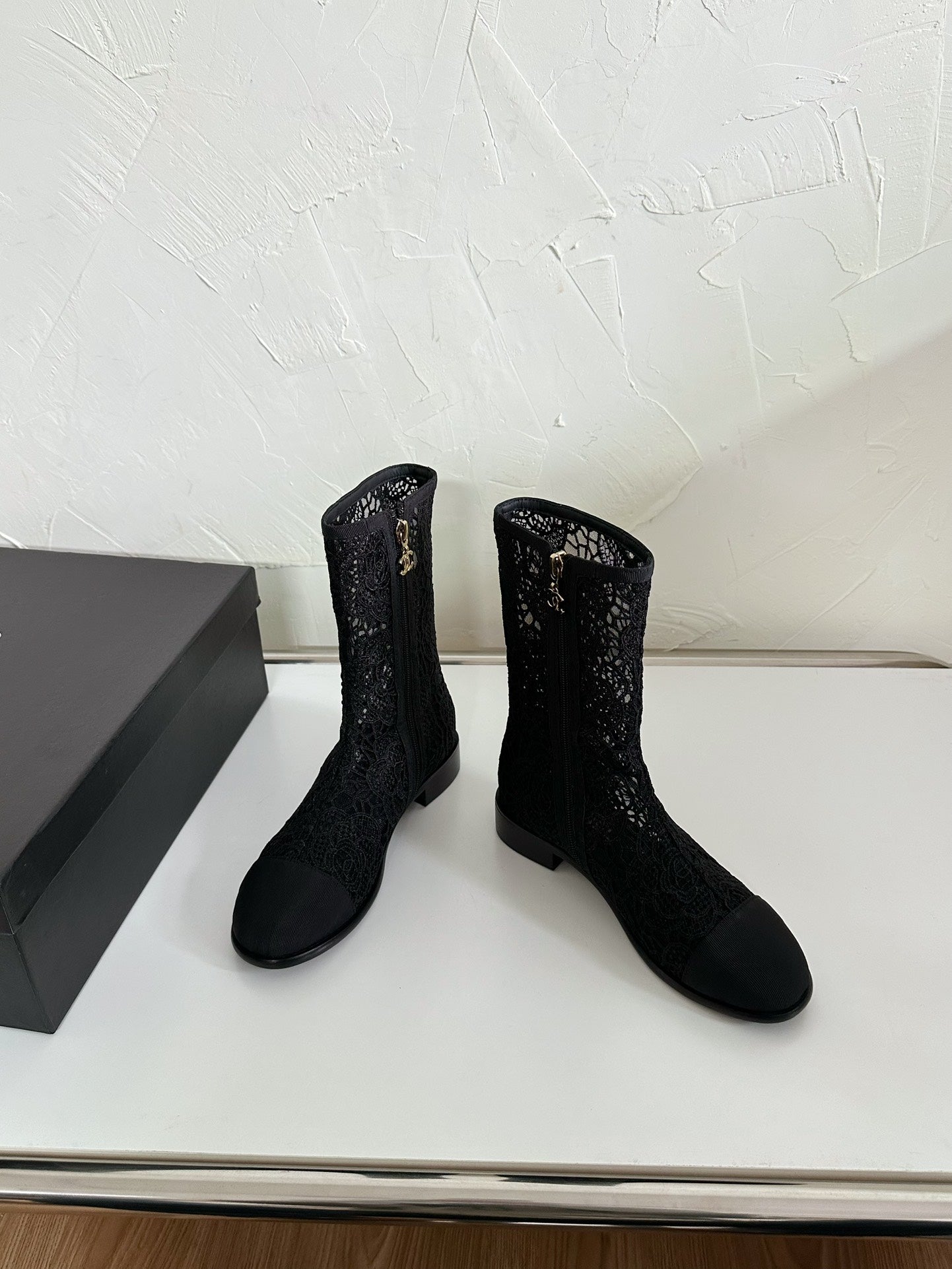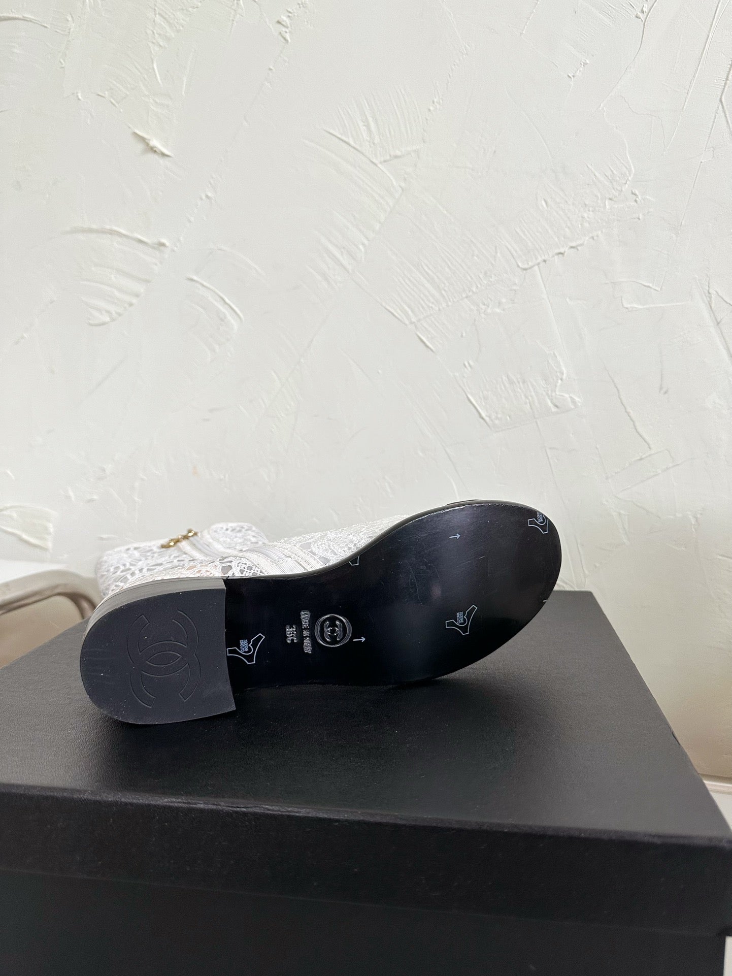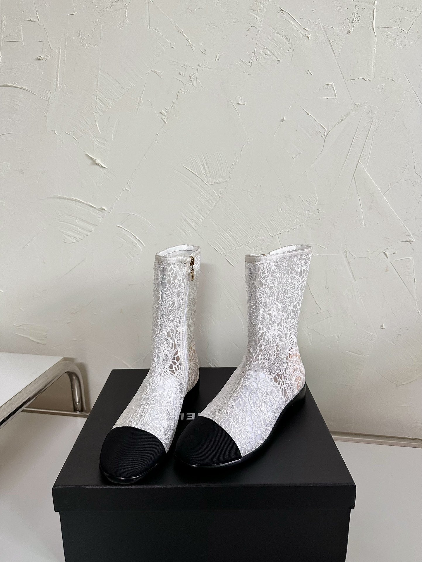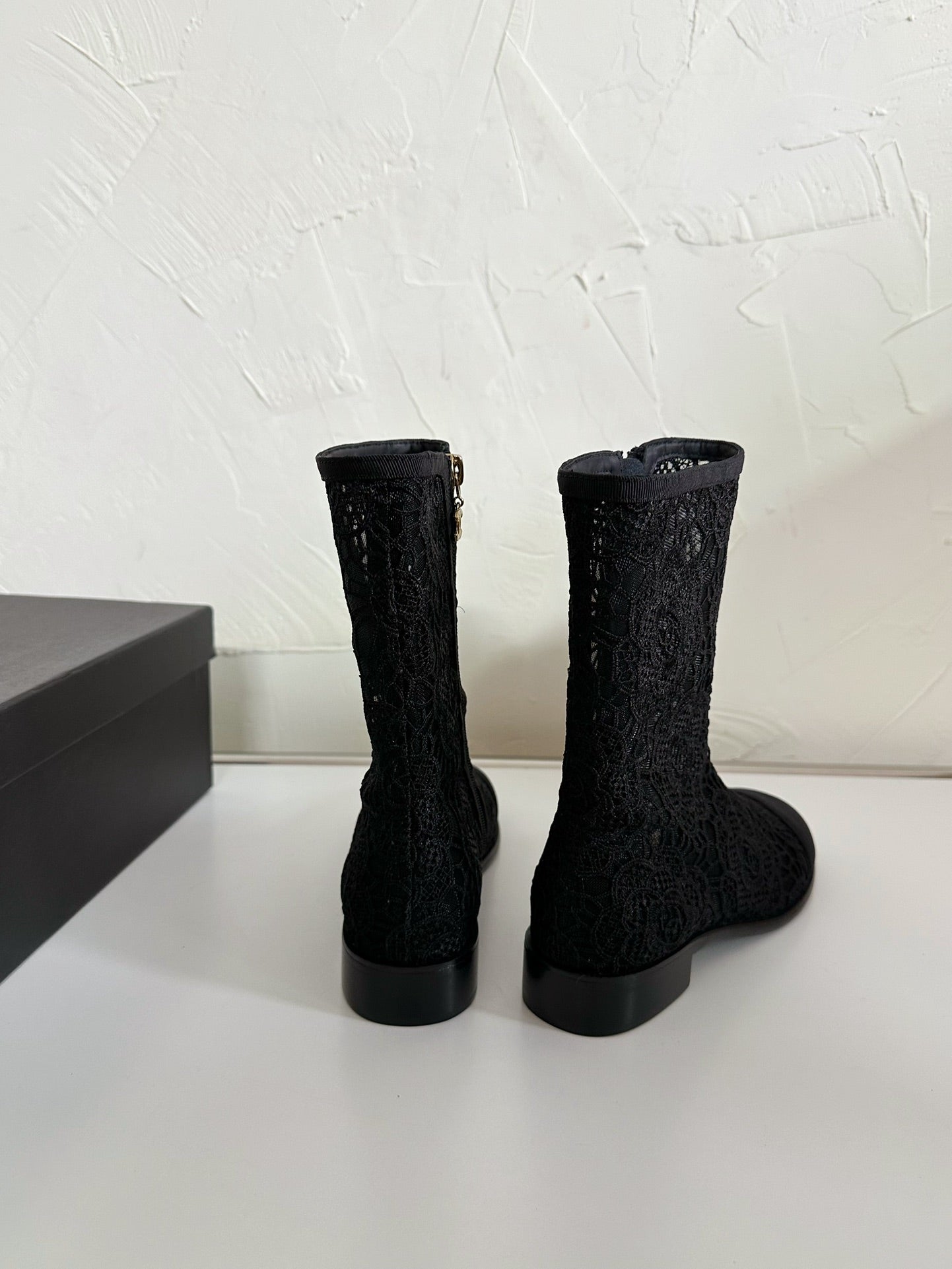 CC Boots Flower White Lace Mesh Black Grosgrain