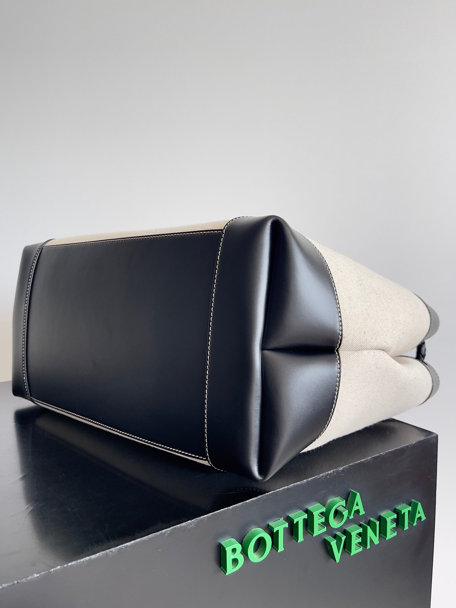 BV Large Andiamo 45 In Beige Canvas Black Calfskin 209025