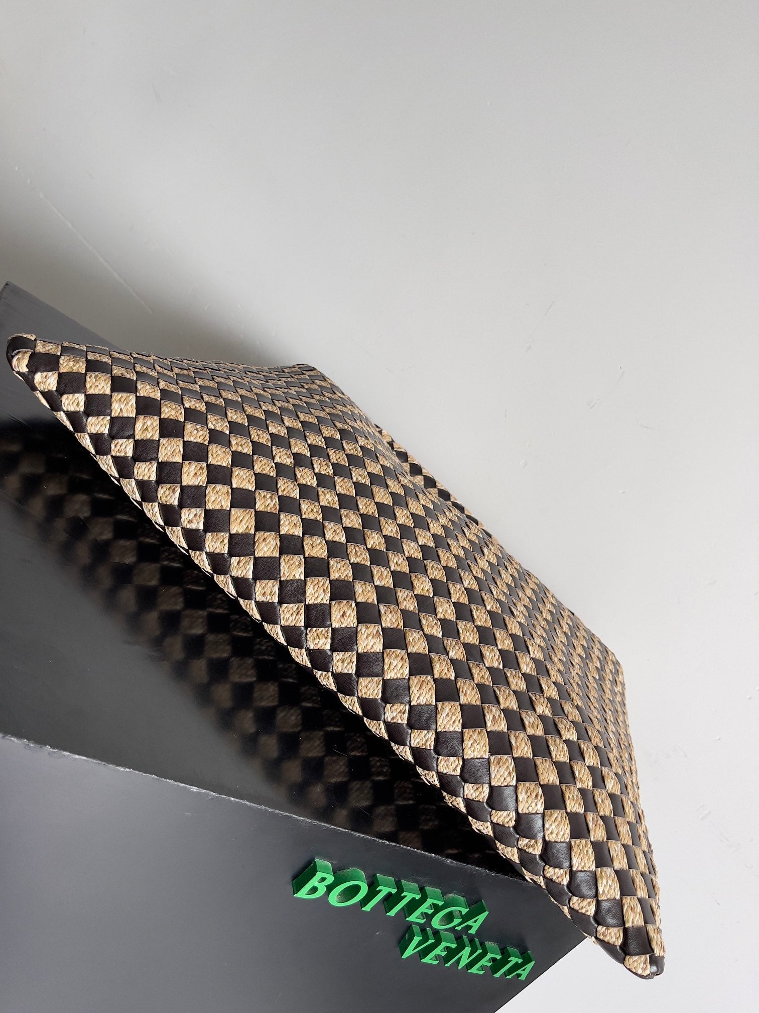 BV Large Hop 54 Chocolate Cowhide Mix Beige Raffia 209070