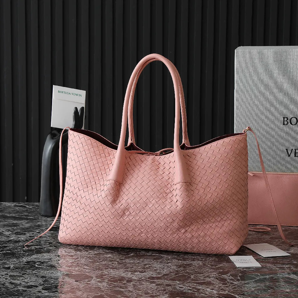 BV Pinacoteca Bag 43cm Pink Intrecciato Calfskin & Suede
