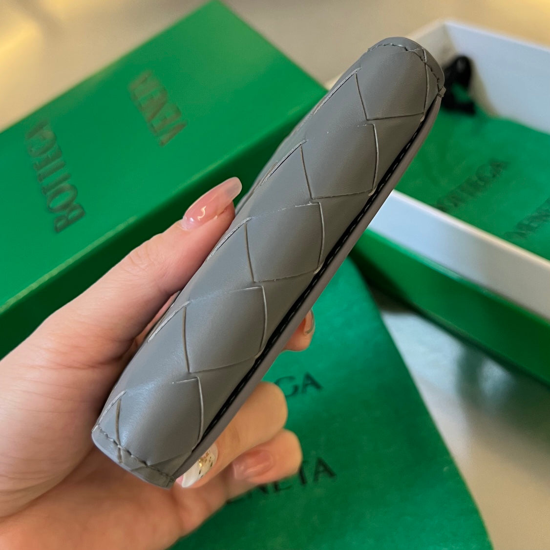 INTRECCIATO BUSINESS 11 GRAY CALFSKIN CARD CASE