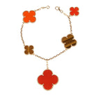 CLOVER BRACELET 5 MOTIFS CARNELIAN TIGER EYE