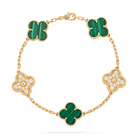 CLOVER MALACHITE DIAMOND BRACELET 5 MOTIF