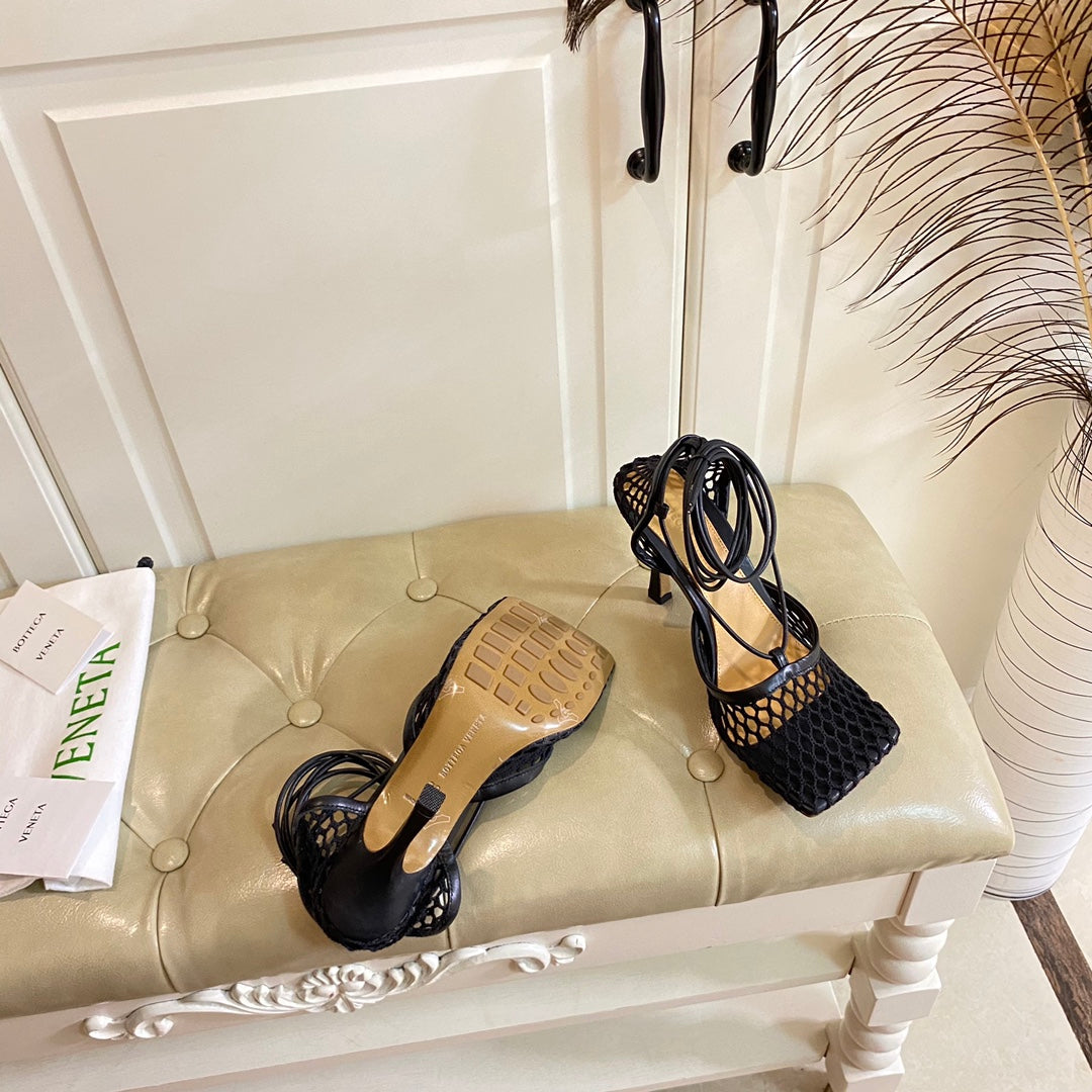 BV 2026 Stretch Lace-Up Sandal Black Mesh Lambskin