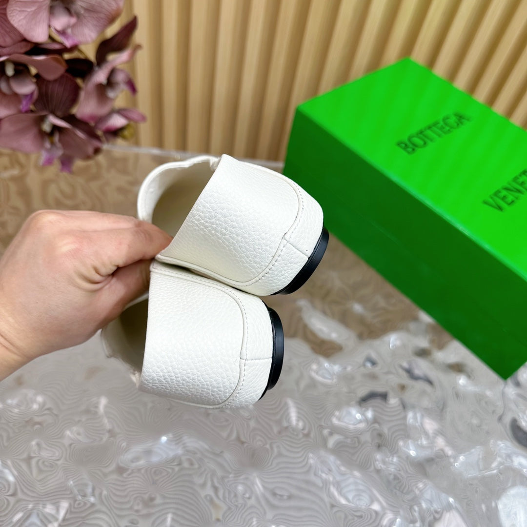 BV Grained White Calfskin Adamo Slippers 957405