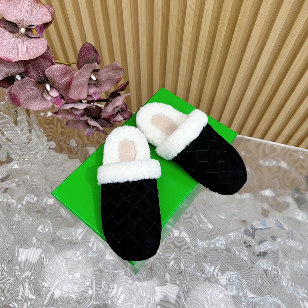 BV Grained Black Suede Calfskin Adamo Slippers 957399