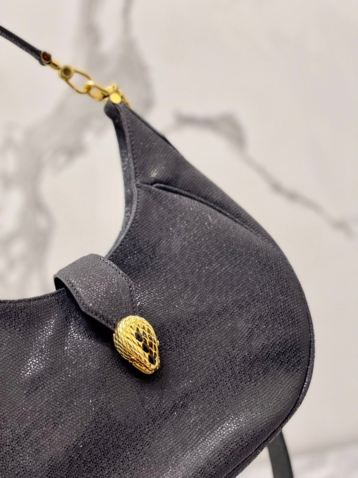 BVL Serpenti Ellipse Crossbody Bag 25cm Black Lambskin GHW 188344