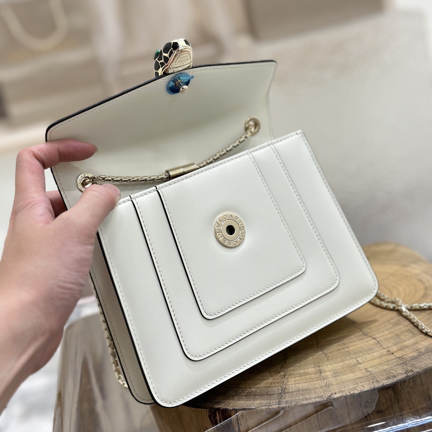 - Serpenti Head: Light Gold-Plated Brass, Black Enamel, White Enamel
