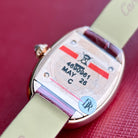 Baignoire 23mm Pink Gold Case Diamond Bezel Red Leather Strap