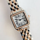 Panthere 22mm Pink Gold Silver Diamond Bezel Double Chain 44cm
