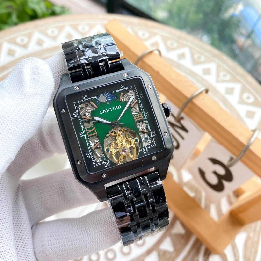 SANTOS DE CARTIE STAINLES STEEL SKELETON DIAL ALL BLACK