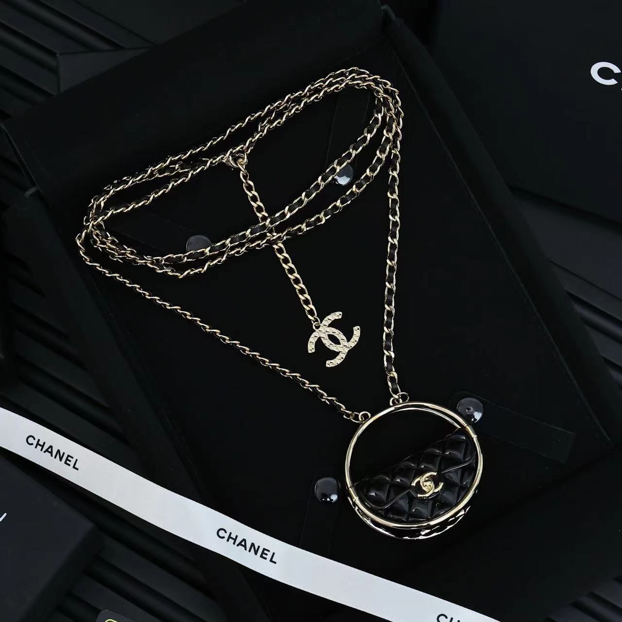 • Color: Black leather & Gold-toned hardware