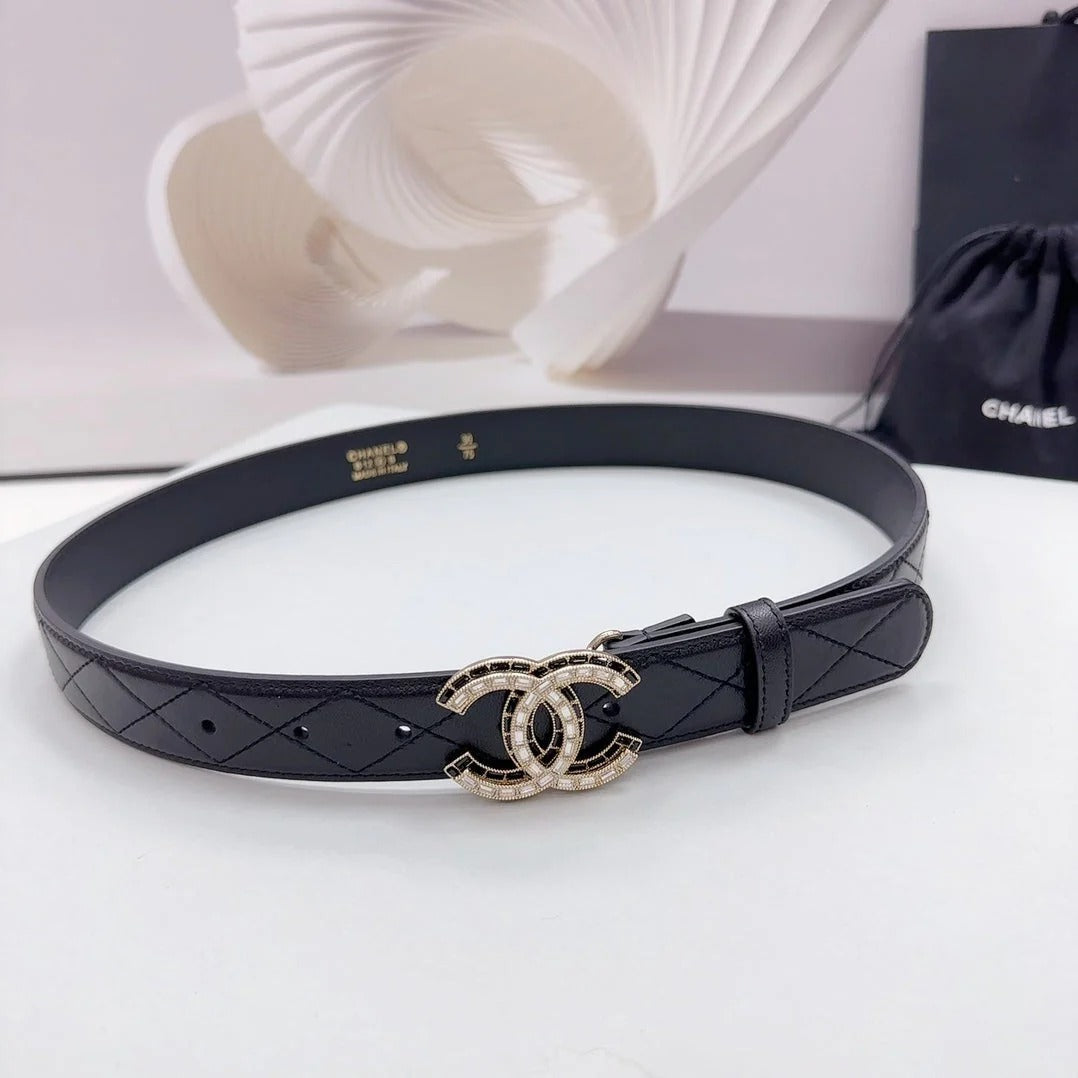 CC 30MM BELT IN BLACK EMBROIDERED CALFSKIN GOLD HARDWARE