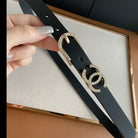 CC BELT 2.0CM BUCKLE GOLD DIAMOND LEATHER BLACK