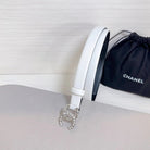 CC BELT 20 MM IN WHITE SMOOTH CALFSKIN SILVER HARDWARE ATTACH RHINSTONE