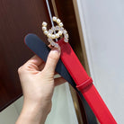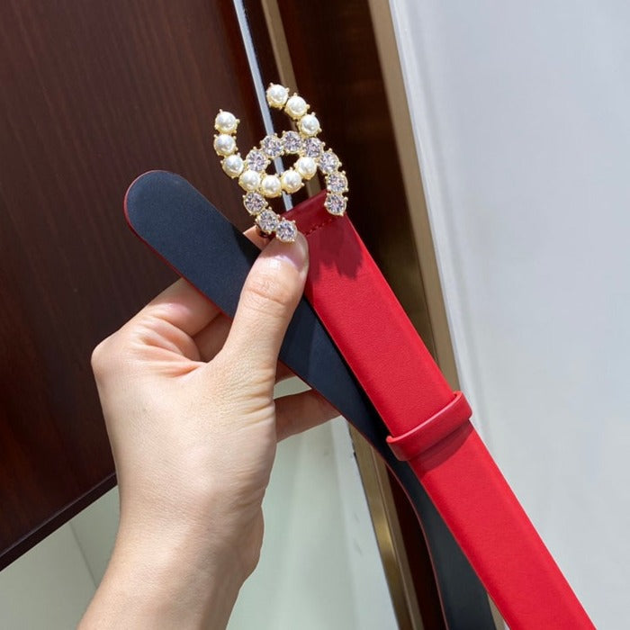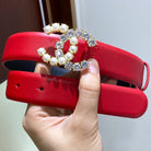 CC BELT 3.0CM LEATHER RED BUCKLE GOLD PEARL DIAMOND