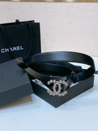 CC BELT 30 MM IN BLACK CALFSKIN PEARL LOGO