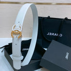 CC BELT 30MM IN WHITE SMOOTH CALFSKIN GOLD MIX WHITE METAL LOGO
