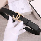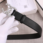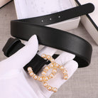CC WOMEN'S BELT 3.0CM BUCKLE PEARL DIAMOND LEATHER BLACK