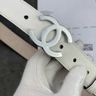 CC WOMEN'S BELT 3.0CM LEATHER WHITE BUCKLE SILVER