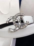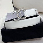 CC WOMEN'S BELT 30MM LEATHER WHITE BUCKLE SILVER BLACK DIAMOND
