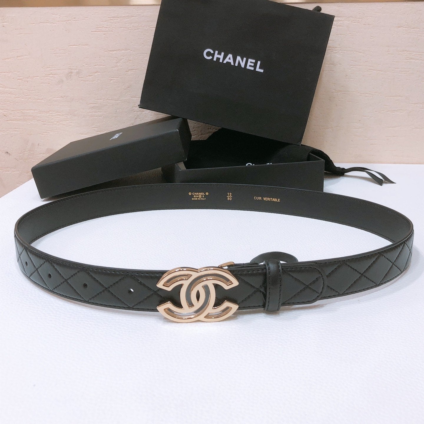 CHANEL BELT 3CM IN BLACK LAMBSKIN GOLD HARDWARE