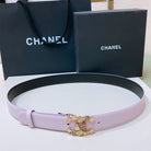 CHANEL BELT 3CM LAVENDER PURPLE AND BLACK LAMBSKIN WITH GOLD HARDWARE