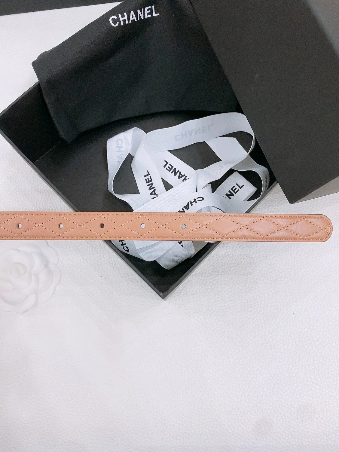 DOUBLE C BELT 20MM IN SAVANNA BROWN CALFSKIN WITH QUILTED STITCHING SPIRAL GOLD BUCKLE