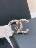DOUBLE C BELT 20MM IN WHITE CALFSKIN WITH QUILTED STITCHING SPIRAL SILVER BUCKLE