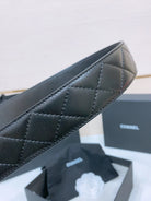 DOUBLE C BELT 38MM IN BLACK QUILTED LAMBSKIN WITH BLACK AND BEIGE LEOPARD PRINT BUCKLE
