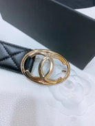 DOUBLE C BELT 38MM IN BLACK QUILTED LAMBSKIN WITH GOLD OVAL BUCKLE CENTERED LOGO