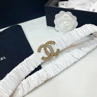 DOUBLE CC 30MM STRETCH BELT IN WHITE CALFSKIN GOLD CHAIN BUCKLE CRYSTAL LOGO