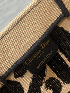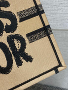 BOOK TOTE 26 BEIGE AND BLACK MISS GRAFFITI EMBROIDERY