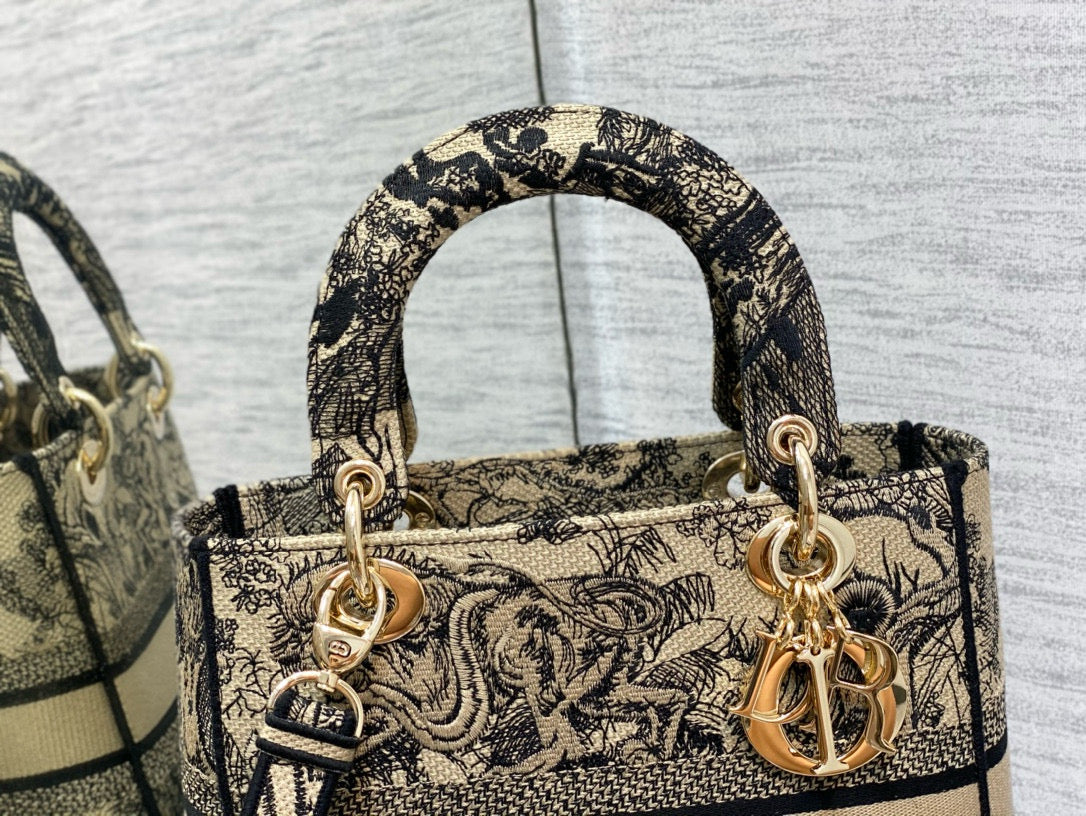 CD 24 Women Mini Lady D-lite Bag Brown Toile de Jouy Embroidery