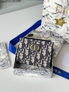 CD 30 Montaigne Dahlia Wallet 12cm Blue Fabric & Calfskin Jacquard