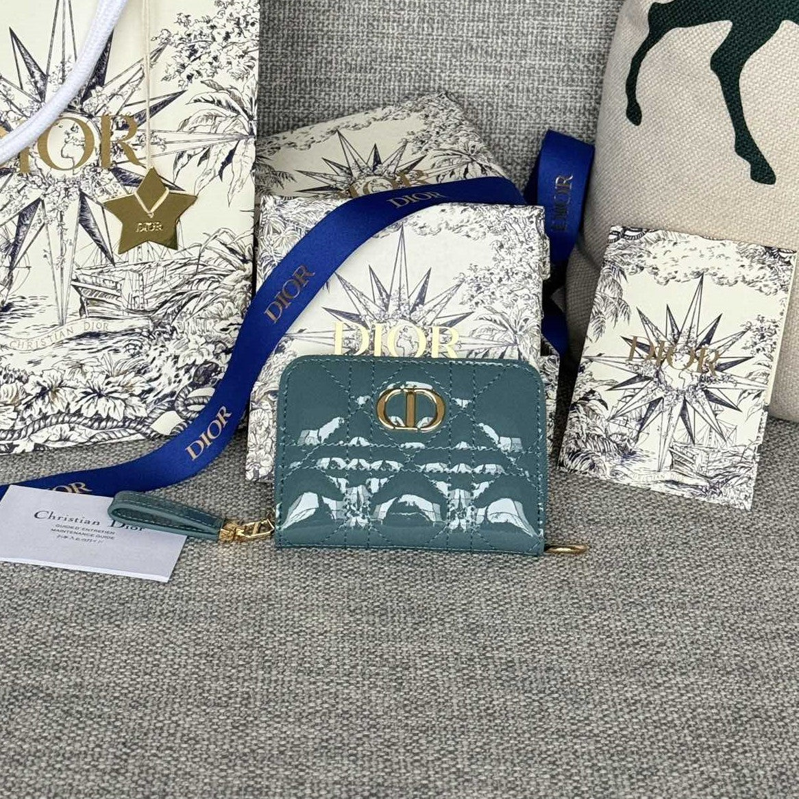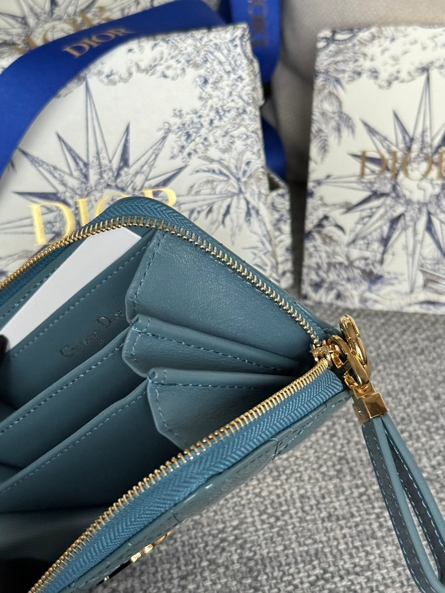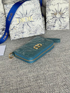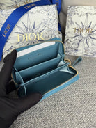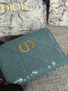 CD Logo Caro 11cm Compact Wallet Shiny Teal Calfskin