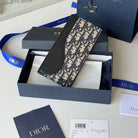 CD Saddle Long Vertical Wallet Black Beige Cowhide & Jacquard