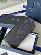 CD Saddle Long Vertical Wallet Black Cowhide & Jacquard